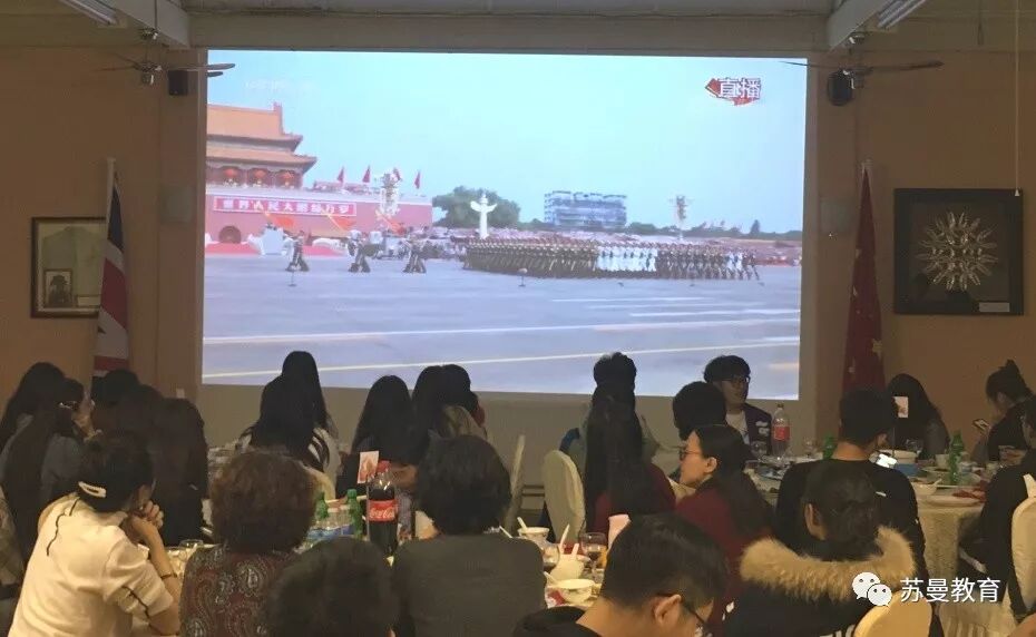 晚上7点-8点,大家在十一国庆阅兵录像中进行了交流晚宴。