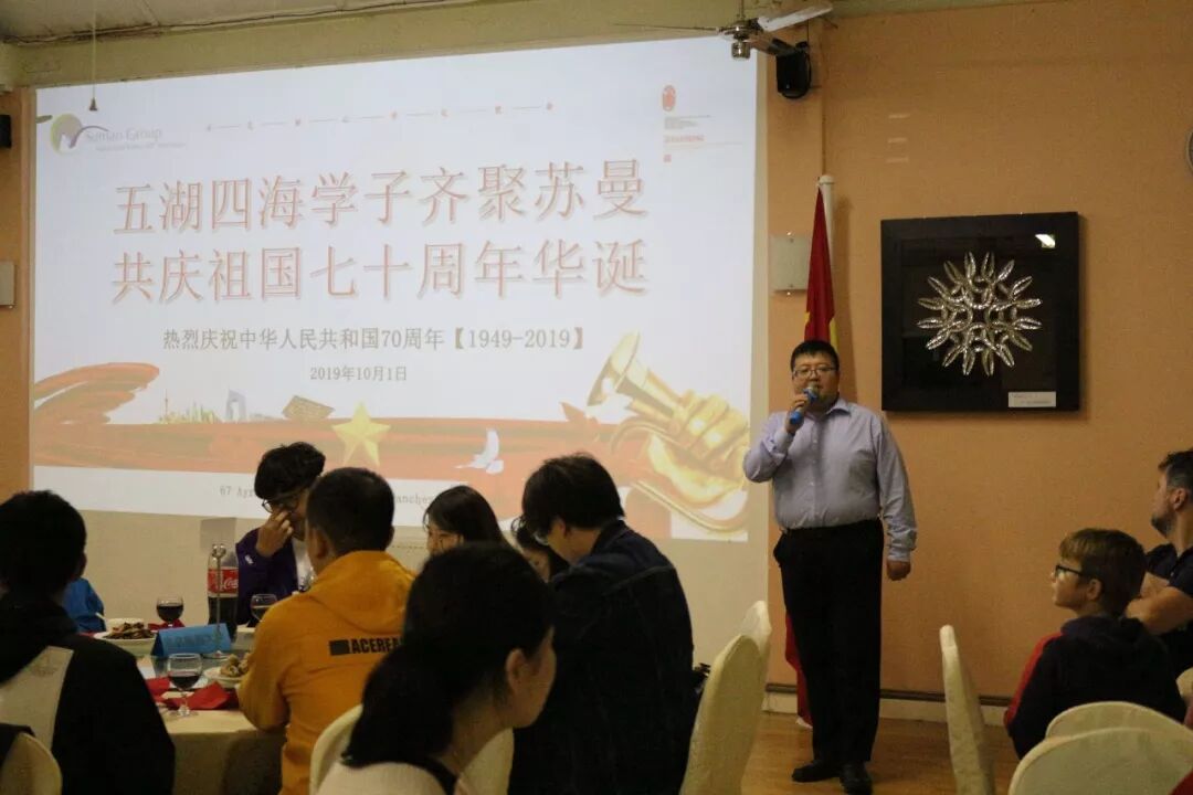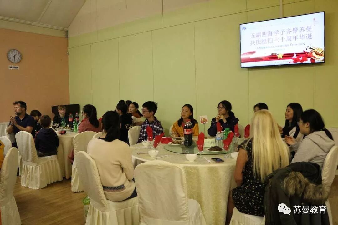 金秋十月,中国学子海外研学,时值祖国华诞七十周年。苏曼中心于10月1晚举行“五湖四海学子齐聚苏曼,共庆祖国华诞七十周年”主题庆祝活动。在这个特殊的日子,他们将用自己的方式为祖国华诞献礼,在异国他乡进行一场别样的爱国主义教育。苏曼中心邀请了当地友好家庭代表一起庆祝。