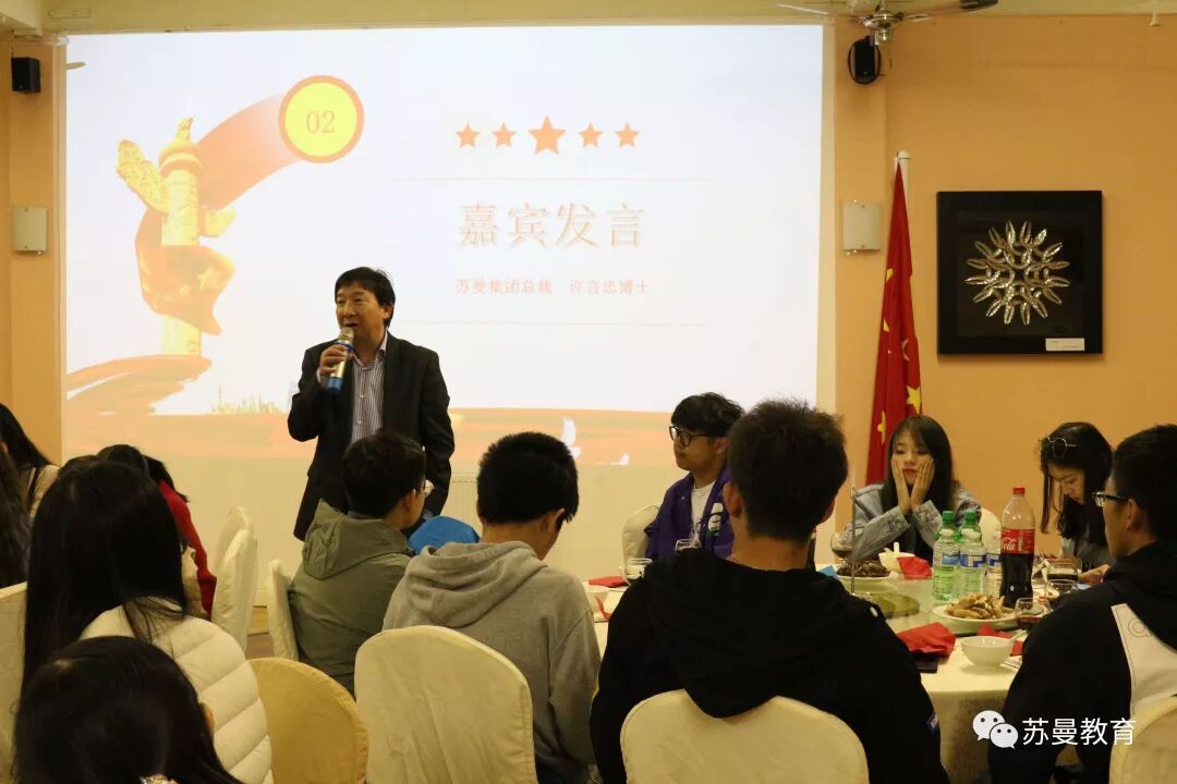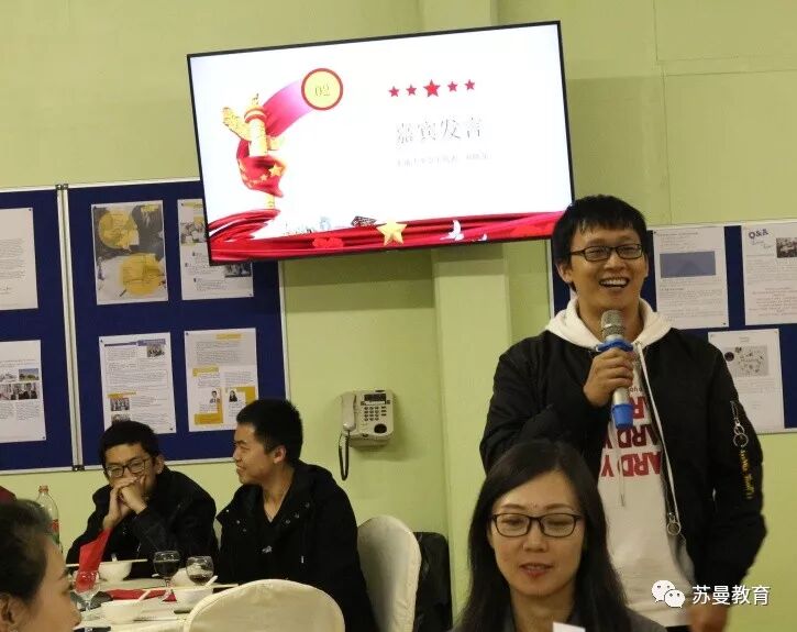 接着,北师大董老师、常州卫校张老师、东南大学学生代表刘晓龙分别发言,感谢苏曼中心的精心安排,表示能够在异国他乡为祖国庆生非常的激动和开心,并为晚会献上祝福。