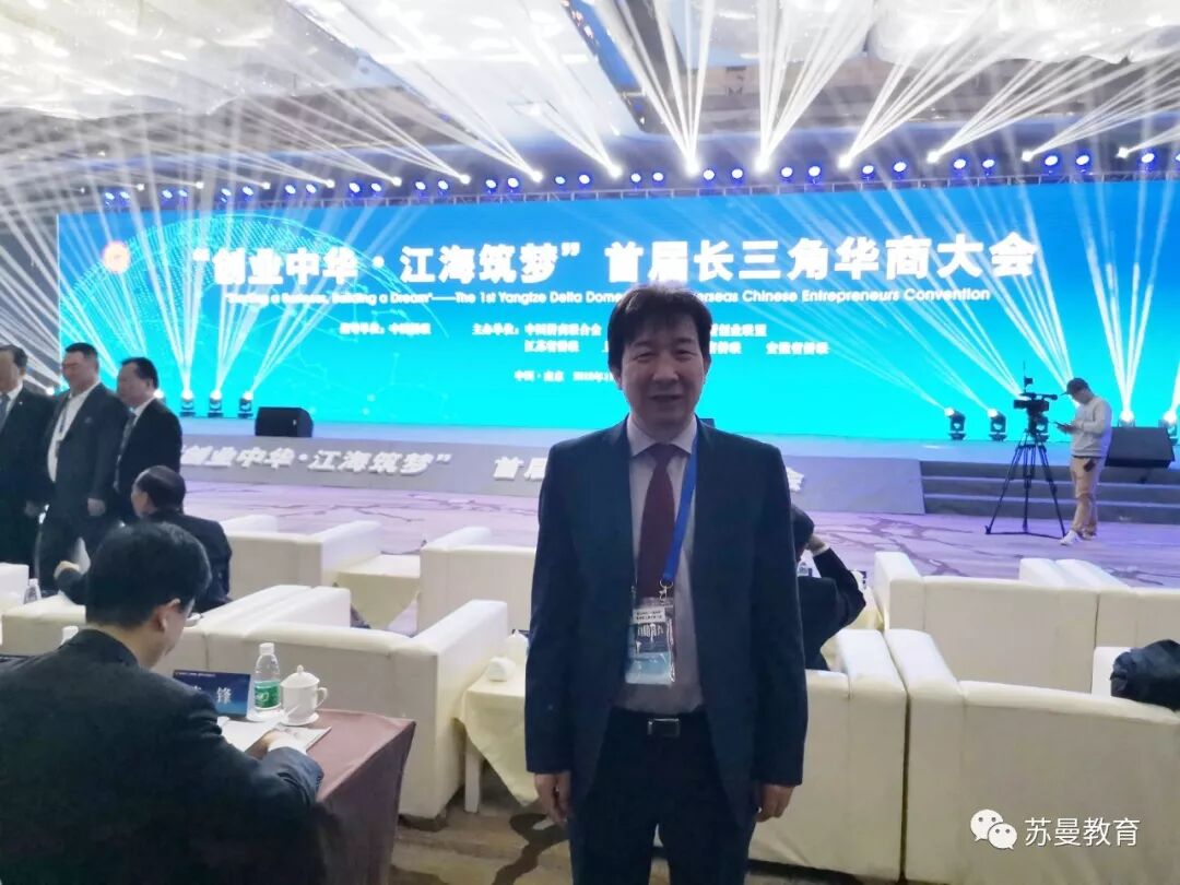 2019年11月19日上午,“创业中华·江海筑梦”首届长三角华商大会在南京国际青年会议酒店开幕。苏曼集团总裁许言忠博士受邀参加此次会议。